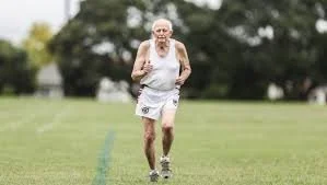 Bruce Nicholls, one of the giants of contemporary global evangelicalism, on a training run in 2016. He was 88 years old at the time.