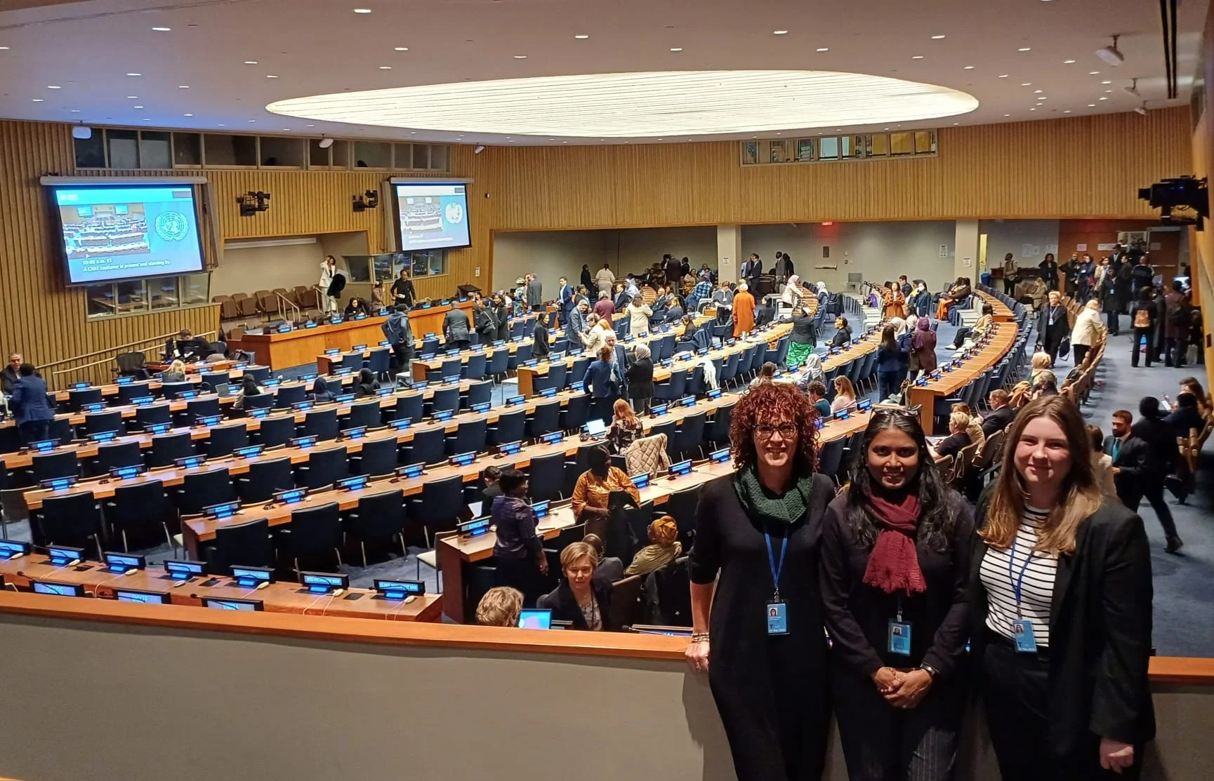 Members of the World Freedom Network before their presentation at the UN Commission on the Status of Women. From left: Sarah Scott Webb (director, Oceania); Helen Avadiar-Nimbalker (director, Asia); Alexandra Sunberg (volunteer, global office).